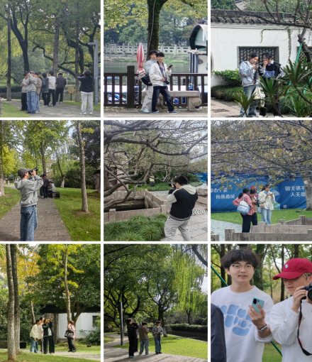 2025年10月21日-10月31日,《产品拍摄与图片处理》课程组织了一次丰富多彩的校外教学实践活动,参与本次校外教学的班级有电商2411/2412/2423/2424。本次校外教学活动地点选在了宁波5A风景名胜地月湖公园,以小组为单位对月湖公园进行实地取景、拍摄。选定院士林、高丽使馆遗址、宁波茶文化博物馆、芳草洲、贺乐必监祠等月湖知名地点进行取景构图。校外实践教学将课堂理论与户外实践紧密结合,旨在让学生们在自然环境中掌握产品摄影的用光、构图及创意表现技巧。通过这样的教学组织形式,让学生的学习目标很明确,循序渐进的过程中掌握拍摄和构图知识,更培养了他们对美的感知能力、创意构思能力以及解决实际问题的能力。