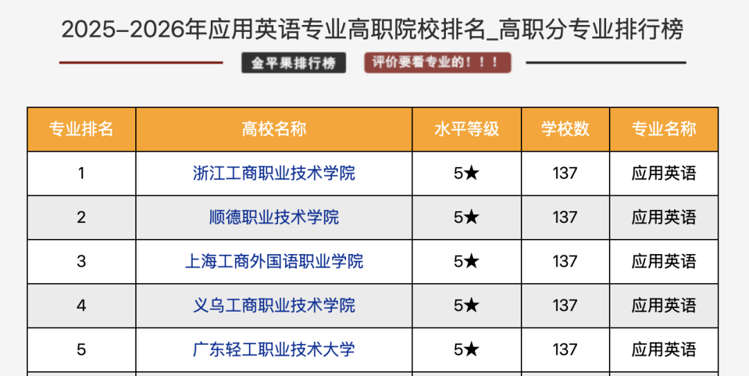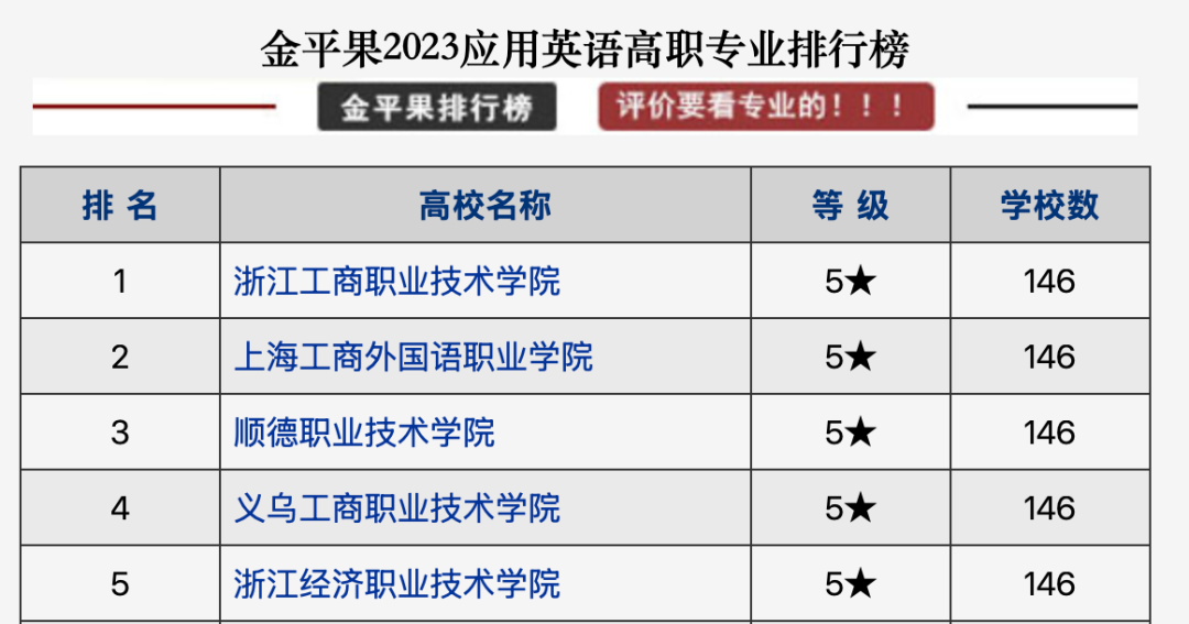 2023年、2024年以及2025年,浙工商职院的应用英语专业连续三年在“金平果”排名第一!